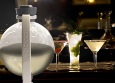 The dispenser can hold all kinds of drinks and has a large refill opening so that ice and fruit can be added to the mix. Drinks can be dispensed through a button operated tap just below the globe-shaped container.